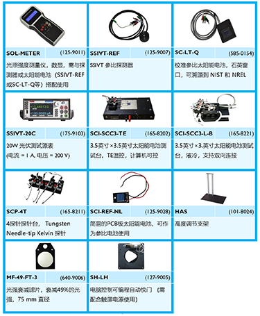 此款太陽模擬器包含如下配件: