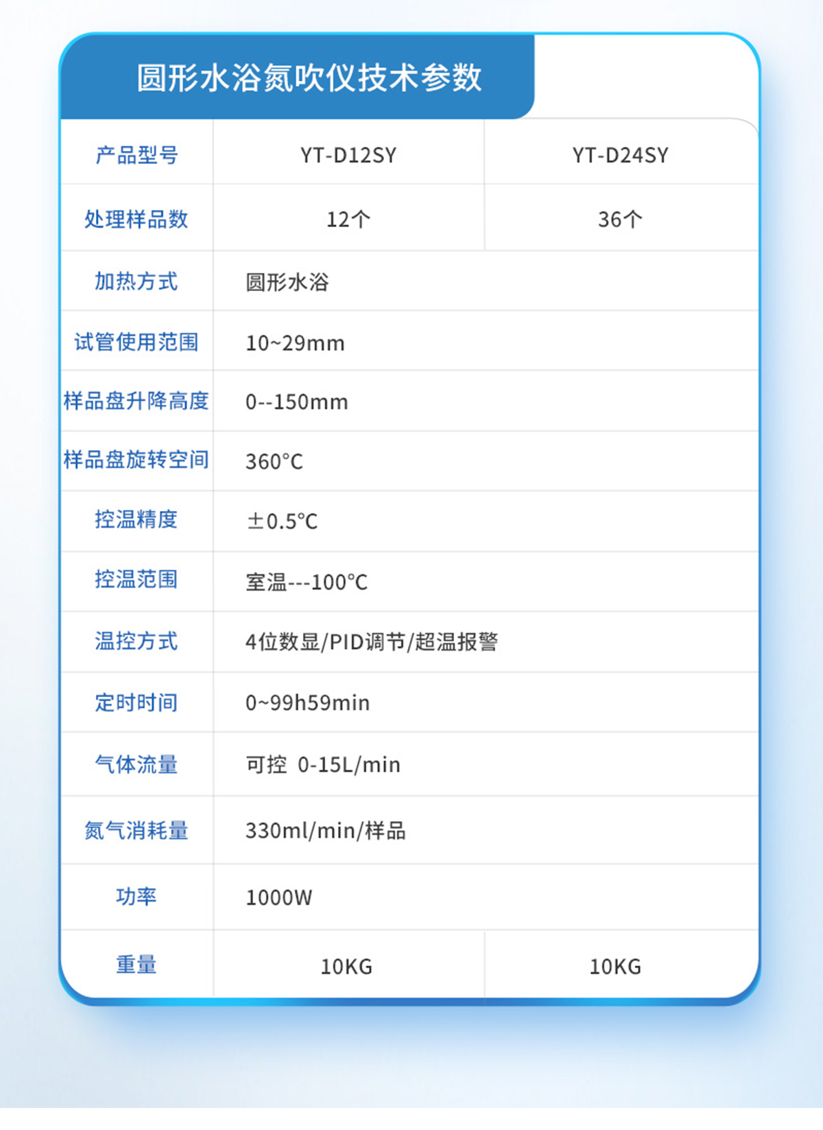 | YT-D24SY | 24個(gè)獨(dú)立控制 | 圓形水浴 | 10~29mm | 0--150mm | 360°C | ±0.5℃ | 室溫---100℃ | 4位數(shù)顯/PID調(diào)節(jié)/超溫報(bào)警 | 0~99h59min | 可控 0-15L/min | 330ml/min/樣品 |