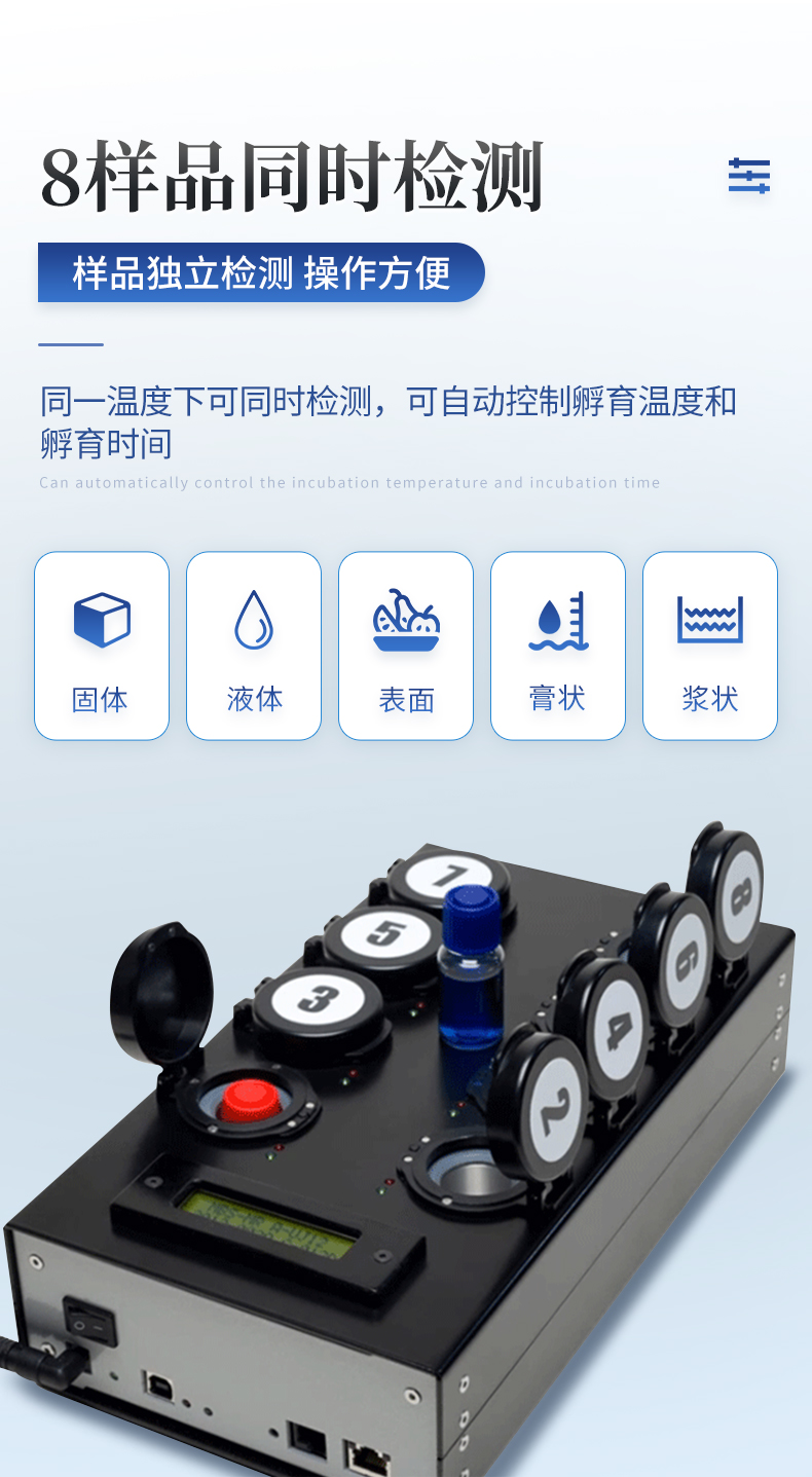 微生物檢測(cè)儀集合培養(yǎng)皿法、酶法(β-葡萄糖苷酸酶分析)、免疫法(抗原搜尋)及基因法(基因搜尋)等技術(shù)的優(yōu)點(diǎn)于一身,檢測(cè)速度較國(guó)標(biāo)法短