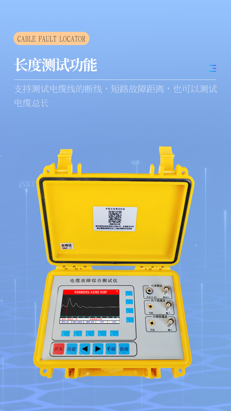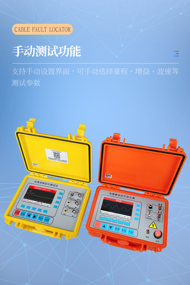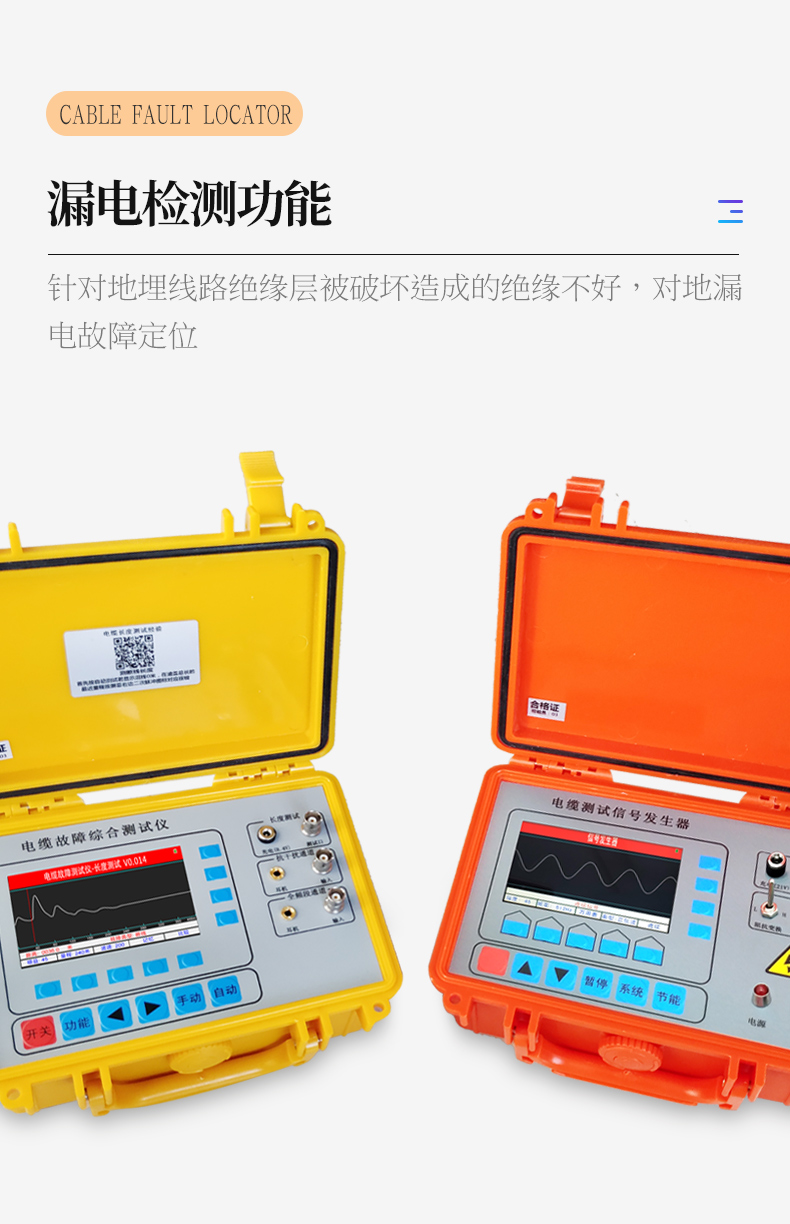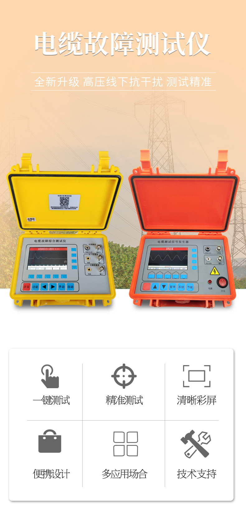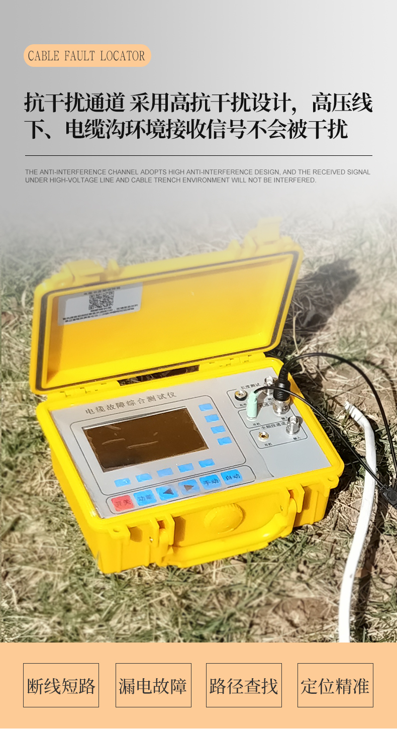 產(chǎn)品概述: 本測(cè)試儀主要用于10KV等級(jí)(可拓展至50kv)以?xún)?nèi)的高低壓地埋電力電纜的斷線(xiàn)、短路、對(duì)地漏電故障( 對(duì)地絕緣電阻在0.5兆歐以?xún)?nèi))的定位及地埋電纜深度、路徑走向的探測(cè) 適用于路燈電纜維護(hù)、農(nóng)田水澆地電纜故障查修、小區(qū)物業(yè)及園林綠化帶地埋鎧甲鐵皮電力電纜、野外動(dòng)力電纜、高速公