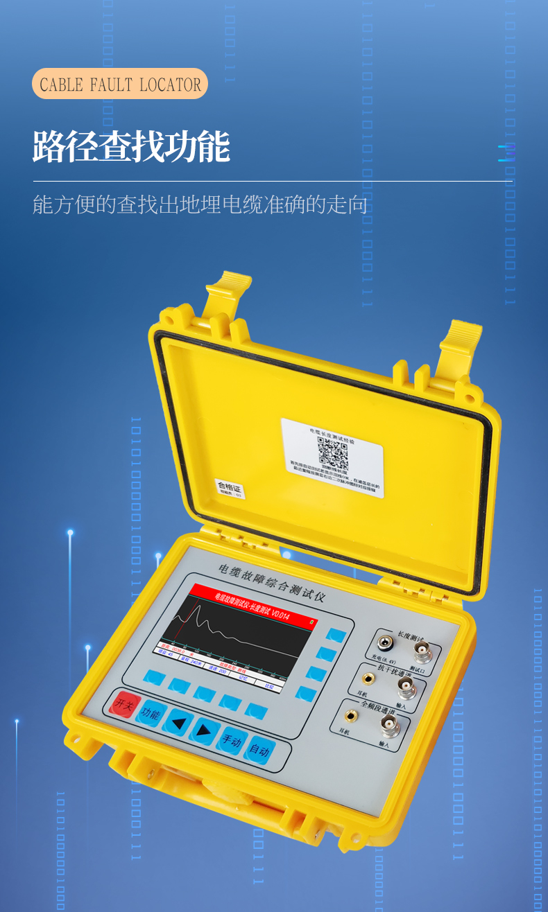 本測(cè)試儀主要用于10KV等級(jí)(可拓展至50kv)以?xún)?nèi)的高低壓地埋電力電纜的斷線(xiàn)、短路、對(duì)地漏電故障( 對(duì)地絕緣電阻在0.5兆歐以?xún)?nèi))的定位及地埋電纜深度、路徑走向的探測(cè)