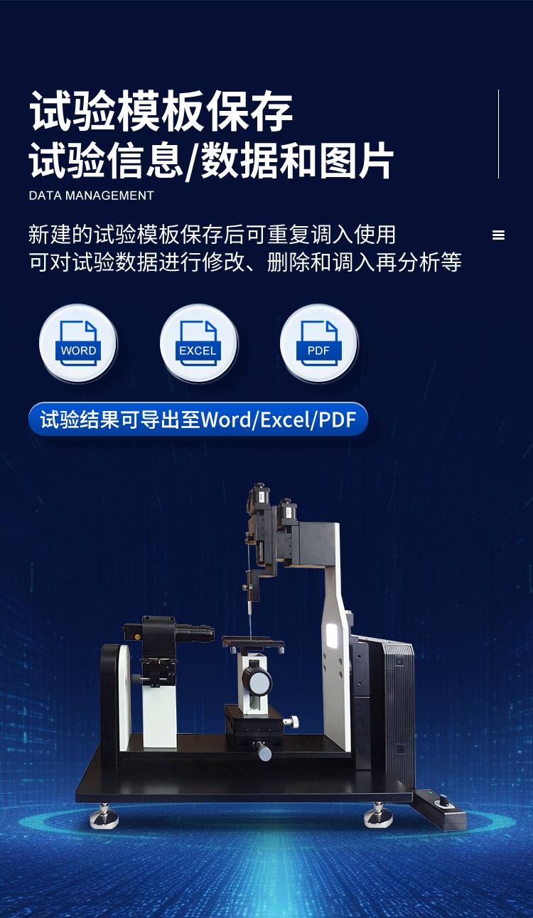 | 1.動(dòng)/靜態(tài)接觸角測(cè)量 | 1-1.分析算法:量高法、量角法、圓環(huán)法、橢圓法、切線法、Y-L法 1-2.具有左接觸角、右接觸角和平均接觸角分開測(cè)試和比較功能 11-3.具有凹面、凸面、弧面、超親水、超疏水等特殊表面分析功能 11-4.具有不規(guī)則形、非軸對(duì)稱本征接觸角的分析功能 11-5.具有前進(jìn)接觸角、后退接觸角及滾動(dòng)角的分析功能 11-6.具有自動(dòng)分析接觸角變化過(guò)程的批處理測(cè)試功能 11-7.測(cè)量范圍:0°~180° 11-8.測(cè)量精度:±0.1° 11-9.提供標(biāo)定塊,可隨時(shí)對(duì)測(cè)量精度進(jìn)行校準(zhǔn) 11-10.測(cè)量分辨率:0.001° | 2.表面/界面張力測(cè)量 | 2-1.分析算法:手動(dòng)法、自動(dòng)法 2-2.測(cè)量范圍:0.01~2000mN/m 2-3.測(cè)量精度:±0.1% 2-4.測(cè)量分辨率:0.001mN/m | 3.表面能估算 | 3-1.估算模型:Fowkes、擴(kuò)展Fowkes、Owens-Wendt、van OSS、Wu調(diào)和平均法、狀態(tài)方程法3-2.可分別得到固體表面能、色散力、極性力、氫鍵力、范德華分量、路易斯酸分量、路易斯堿分量等 3-3.液體數(shù)據(jù)庫(kù):預(yù)置37種常用液體表面張力及其分量數(shù)據(jù),數(shù)據(jù)可直接調(diào)入用于表面能估算 3-4.液體庫(kù)數(shù)據(jù)可自行添加、刪除和修改 | 4.潤(rùn)濕性分析 | 4-1.通過(guò)液體的表面張力和對(duì)固體的接觸角可分析該固體的潤(rùn)濕程度,包括粘附功、鋪展系數(shù)和粘附張力 | 5.?dāng)?shù)據(jù)管理 | 5-1.通過(guò)試驗(yàn)?zāi)0灞4嬖囼?yàn)信息、試驗(yàn)數(shù)據(jù)和圖片 35-2.新建的試驗(yàn)?zāi)0灞4婧罂芍貜?fù)調(diào)入使用 35-3.可對(duì)試驗(yàn)數(shù)據(jù)進(jìn)行修改、刪除和調(diào)入再分析等 35-4.試驗(yàn)數(shù)據(jù)可標(biāo)注于圖片上,并隨圖片一起保存 35-5.試驗(yàn)結(jié)果可導(dǎo)出至Word、Excel和PDF | 6.圖像拍攝 | 6-1.單張拍攝、連續(xù)拍攝、視頻錄制和圖片回放 6-2.可選擇采用相機(jī)外觖發(fā)功能自動(dòng)拍攝 | 7.光學(xué)成像系統(tǒng) | 7-1.相機(jī):300萬(wàn)像素、幀率200幀/秒 7-2.鏡頭:0.6~4.0×連續(xù)變倍、工作距離82mm 7-3.調(diào)焦范圍:±12.5mm;調(diào)焦精度:0.25mm 7-4.調(diào)焦時(shí)軟件自動(dòng)檢測(cè)清晰度,消除人為誤差 7-5.水平和俯仰調(diào)整范圍:±2° 7-6.背光源:LED冷光源+遮光板,亮度無(wú)極調(diào)節(jié) | 8.滴液系統(tǒng) | 8-1.滴液方式:軟件控制進(jìn)樣器自動(dòng)滴液和自動(dòng)升降 8-2.*小滴液量:0.1μl/滴8-3.滴液精度:±0.05μl | 9.傾斜樣品臺(tái) | 9-1.臺(tái)面尺寸:X100×Y90mm 9-2.移動(dòng)行程:X50×Y50×Z50mm 9-3.移動(dòng)方式:手動(dòng)旋鈕控制三維移動(dòng)定位 9-4.傾斜方式:軟件控制樣品臺(tái)、成像系統(tǒng)和滴液系統(tǒng)同軸整體傾斜 9-5.傾斜過(guò)程中液滴始終位于視窗中心,無(wú)需人為調(diào)整樣品臺(tái)位置 9-6.傾斜范圍:0°~±90° 9-7.傾斜精度:±0.01° | 10.主機(jī)參數(shù) | 10-1.尺寸:約W585×D280×H650mm 10-2.重量:約25kg 10-3.電源:1∮ AC220V 50HZ |