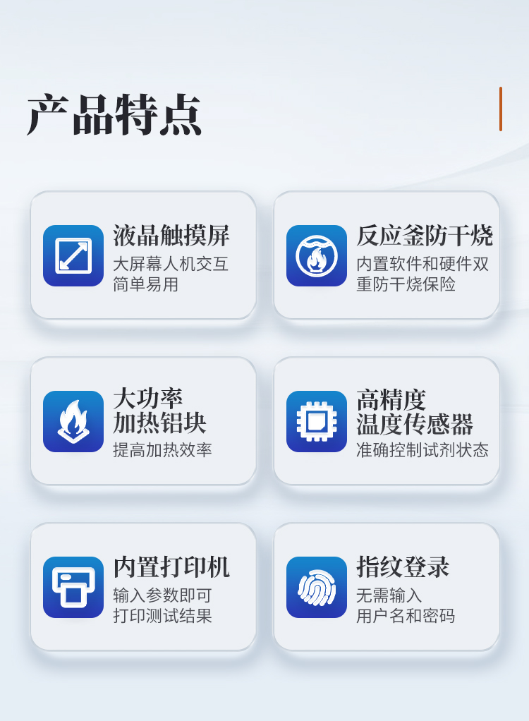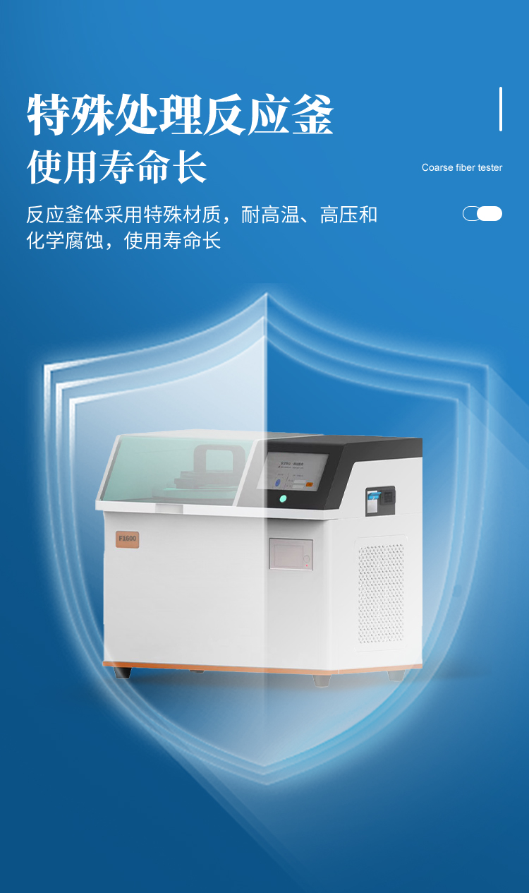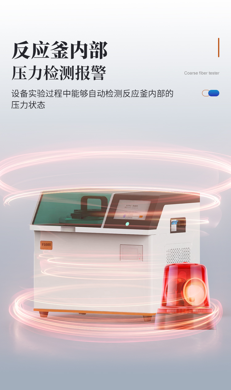 | 1、濾袋式纖維測定儀是遵循**和國標規(guī)定的消煮法,利用化學溶劑提取纖維含量,很好的解決了坩鍋抽濾、轉(zhuǎn)移法所造成的費工費時、火力控制不當、殘渣易損失等問題,全自動進行溶劑加注、恒溫加熱、消煮、震蕩、廢液排出等操作。適用于測定粗纖維CF、酸性洗滌纖維ADF、中性洗滌纖維NDF、酸性洗滌木質(zhì)素等的測定。 | 2、運用技術(shù):濾袋技術(shù),適用于CF、NDF、ADF方法的纖維分析。 | 3、大屏幕人機交互界面,16位真彩色液晶觸摸屏,操作界面簡單易用,便于用戶的學習和使用。 | 4、內(nèi)置可設(shè)置的實驗方案,共可以設(shè)置50種不同的實驗方案。 | 5、內(nèi)置用戶登錄功能,共有5個用戶賬戶。 | 6、內(nèi)置用戶賬戶權(quán)限設(shè)置,每個登錄賬戶均可設(shè)置自己的操作權(quán)限,不同等級的操作權(quán)限對機器能進行操作的功能不一樣。 | 7、指紋登錄功能,無需輸入用戶名和密碼,使用錄入的指紋信息即可登錄,更加方便快捷。 | 8、內(nèi)置儀器功能部件檢測功能,儀器內(nèi)部所有的可動工作部件在屏幕上均有對應(yīng)的檢測開關(guān),方便用戶日常維護。 | 9、特殊處理反應(yīng)釜,反應(yīng)釜體采用特殊材質(zhì),耐高溫、高壓和化學腐蝕,使用壽命長。 | 10、反應(yīng)釜防干燒功能,內(nèi)置軟件和硬件雙重防干燒保險,防止釜體干燒。 | 11、反應(yīng)釜密閉性自檢技術(shù),反應(yīng)釜能夠在實驗過程中進行密閉性自檢,防止反應(yīng)釜蓋不緊。 | 12、放泡沫結(jié)構(gòu)設(shè)計,獨特的消煮結(jié)構(gòu)能夠有效防止試劑加熱時產(chǎn)生的泡沫,且無需添加正辛醇等消泡劑,節(jié)省試劑且更環(huán)保無異味。 | 13、采用大功率加熱鋁塊,提高加熱效率。 | 14、密閉消煮技術(shù),實驗過程中產(chǎn)生的蒸汽不會擴散到設(shè)備以外,實現(xiàn)了不需要冷卻水進行冷卻的微沸消煮功能,設(shè)備使用更加方便。 | 15、**控溫技術(shù),反應(yīng)釜內(nèi)部安裝有高精度溫度傳感器,**控制試劑為微沸狀態(tài),實驗效果好。 | 16、反應(yīng)釜內(nèi)部壓力檢測報警功能,設(shè)備實驗過程中能夠自動檢測反應(yīng)釜內(nèi)部的壓力狀態(tài),一旦溫度過高導(dǎo)致壓力過大會自動產(chǎn)生報警并暫停實驗,同時屏幕上會自動彈出報警界面。 | 17、實驗完成提示功能,一旦整個實驗完成設(shè)備會自動產(chǎn)生蜂鳴聲進行提示,同時屏幕上也會顯示實驗完成的提示界面。 | 18、內(nèi)置3種纖維的結(jié)果計算公式和打印機,無需人工計算,輸入?yún)?shù)即可打印測試結(jié)果。 |