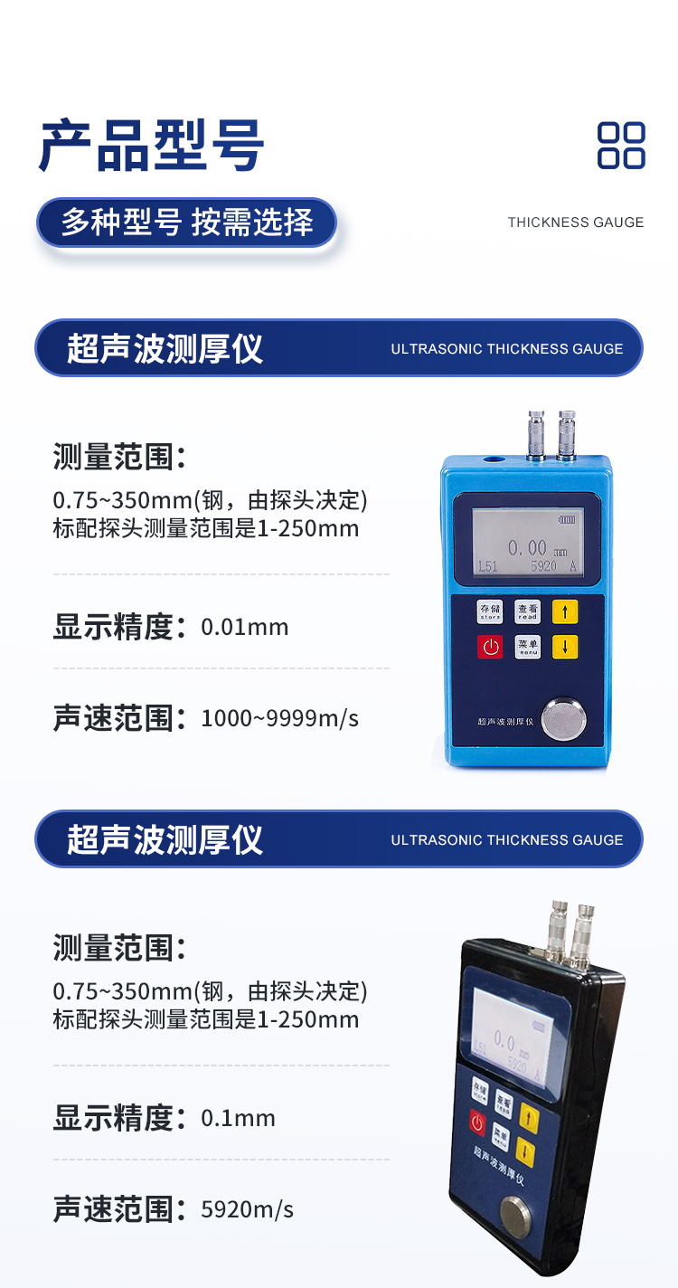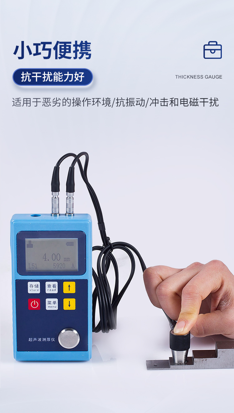 產(chǎn)品簡介:云唐超聲波測厚儀是一款利用超聲波測量原理,采用高速處理器、高集成芯片設計,實現(xiàn)便攜式、無損、快速、精準地測量多種材料厚度及聲速的高精度便攜式測厚儀。能以恒定速度穿透物體且產(chǎn)生反射波的材料都可以使用。適用于各種材料的高精度厚度測量需求,可應用于各種金屬(鋼鐵、不銹鋼、鋁、銅、等)石英、玻璃、