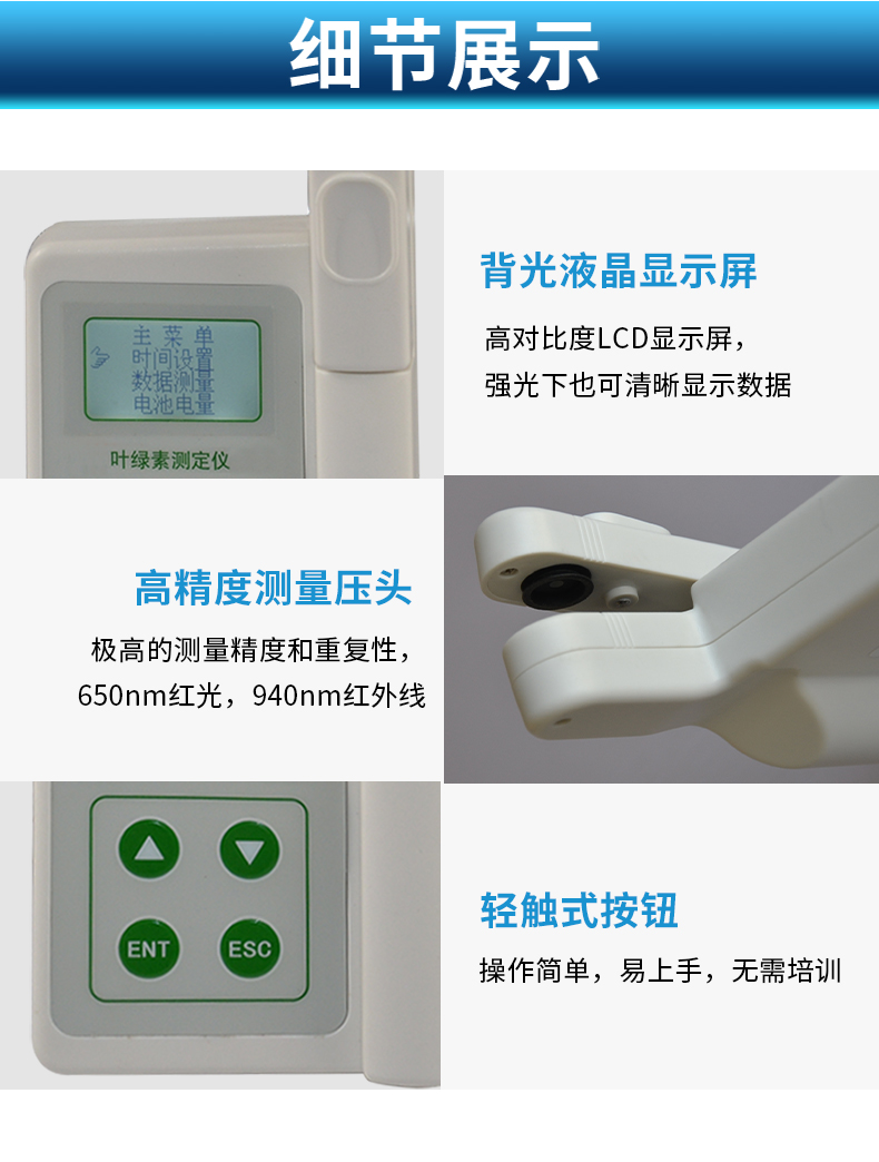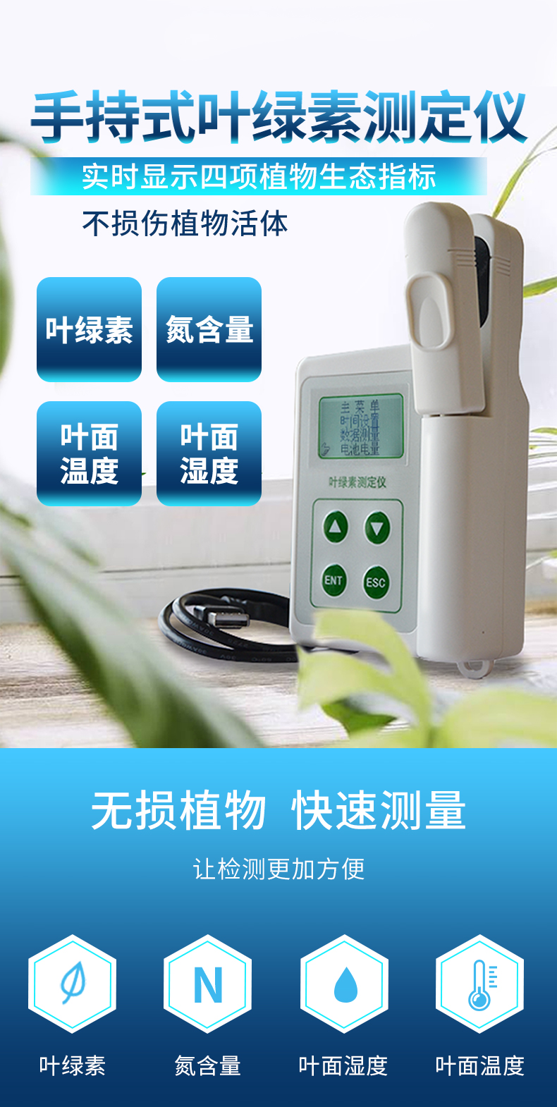 葉綠素測(cè)定儀可 以即時(shí)測(cè)量植物的葉綠素相對(duì)含量(單位SPAD)或綠色程度、葉面溫度,從而解植物真實(shí)的硝基需求量并且了解土壤硝基的缺乏程度或是否過(guò)多地施加了氮肥。 可以通過(guò)此款儀器來(lái)增加氮肥的利用率,并可保護(hù)環(huán)境??蓮V泛應(yīng)用于農(nóng)林相關(guān)科研單位和高校對(duì)植物生理指標(biāo)的研究和農(nóng)業(yè)生產(chǎn)的指導(dǎo)。