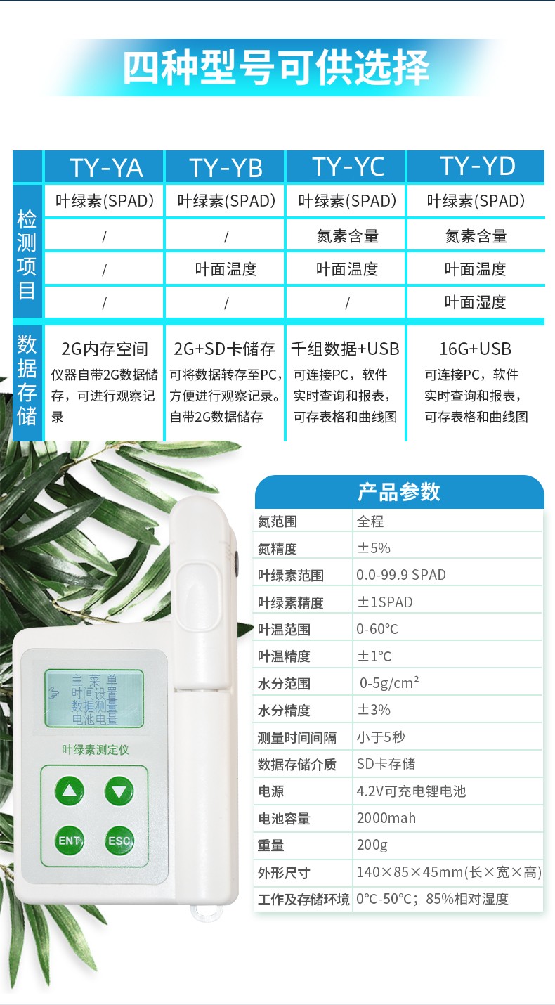 | 葉綠素測(cè)定儀TY-YB可同時(shí)測(cè)量葉綠素、葉面溫度兩個(gè)參數(shù),帶上位機(jī)軟件功能,數(shù)據(jù)可導(dǎo)出。 | 快速無(wú)損植物活體檢測(cè),不影響植物成長(zhǎng)。 | 一次操作可同時(shí)測(cè)定所有參數(shù),實(shí)時(shí)顯示,且可同時(shí)儲(chǔ)存 | 歷史數(shù)據(jù)查看,即可順序查看,也可跳轉(zhuǎn)查看。 | 測(cè)量數(shù)據(jù)可連接計(jì)算機(jī)將測(cè)量數(shù)據(jù)導(dǎo)出,便于管理和分析。 | 歷史數(shù)據(jù)查看,即可順序查看,也可跳轉(zhuǎn)查看。 | 意外斷電后已保存在主機(jī)里的數(shù)據(jù)不丟失。 | 對(duì)于歷史數(shù)據(jù)即可逐條刪除,也可以一鍵式全部刪除。 | 使用鋰電池供電,帶背光功能。 | 中英文一鍵式切換。 | 上位機(jī)軟件功能(YT-YB型): | 每種參數(shù)的報(bào)表、曲線圖均可選擇時(shí)段查詢查看。 | 顯示每種參數(shù)過(guò)程曲線趨勢(shì),**值、*小值、平均值顯示查看,放大、縮小功能。 | 可將存儲(chǔ)記錄的數(shù)據(jù)以EXCEL格式備份保存,方便以后調(diào)用。 | 可將存儲(chǔ)記錄的數(shù)據(jù)曲線圖以BMP圖片格式備份保存,方便以后調(diào)用。 |
