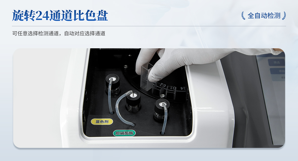 產(chǎn)品介紹: 全自動農(nóng)藥殘留檢測儀是依據(jù)國家標準方法(GB/T5009.199-2003),采用酶抑制率比色法對水果、蔬菜等農(nóng)產(chǎn)品中有機磷和氨基甲酸酯類農(nóng)藥含量進行快速準確的檢測。該設(shè)備廣泛應(yīng)用于蔬菜批發(fā)市場、超市、商場、食藥監(jiān)等部門的蔬菜和水果中的農(nóng)藥殘留檢測。 儀器主要包括光源校準、系統(tǒng)設(shè)置、