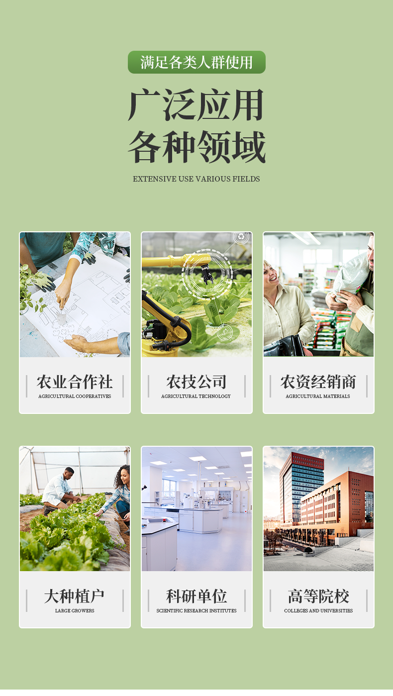 | 全項目土壤肥料養(yǎng)分檢測儀功能全:測試項目國內外*全(各類藥劑均可選購)。 | 配套齊全:該儀器集藥、器、儀為一體,攜帶方便,相當于一個小型實驗室。適于農業(yè)服務部門或農資經銷商、肥料廠商測土施肥和鑒別肥料真假。 | 操作簡便、速度快捷,成品藥劑開瓶即用,無須配置。 |