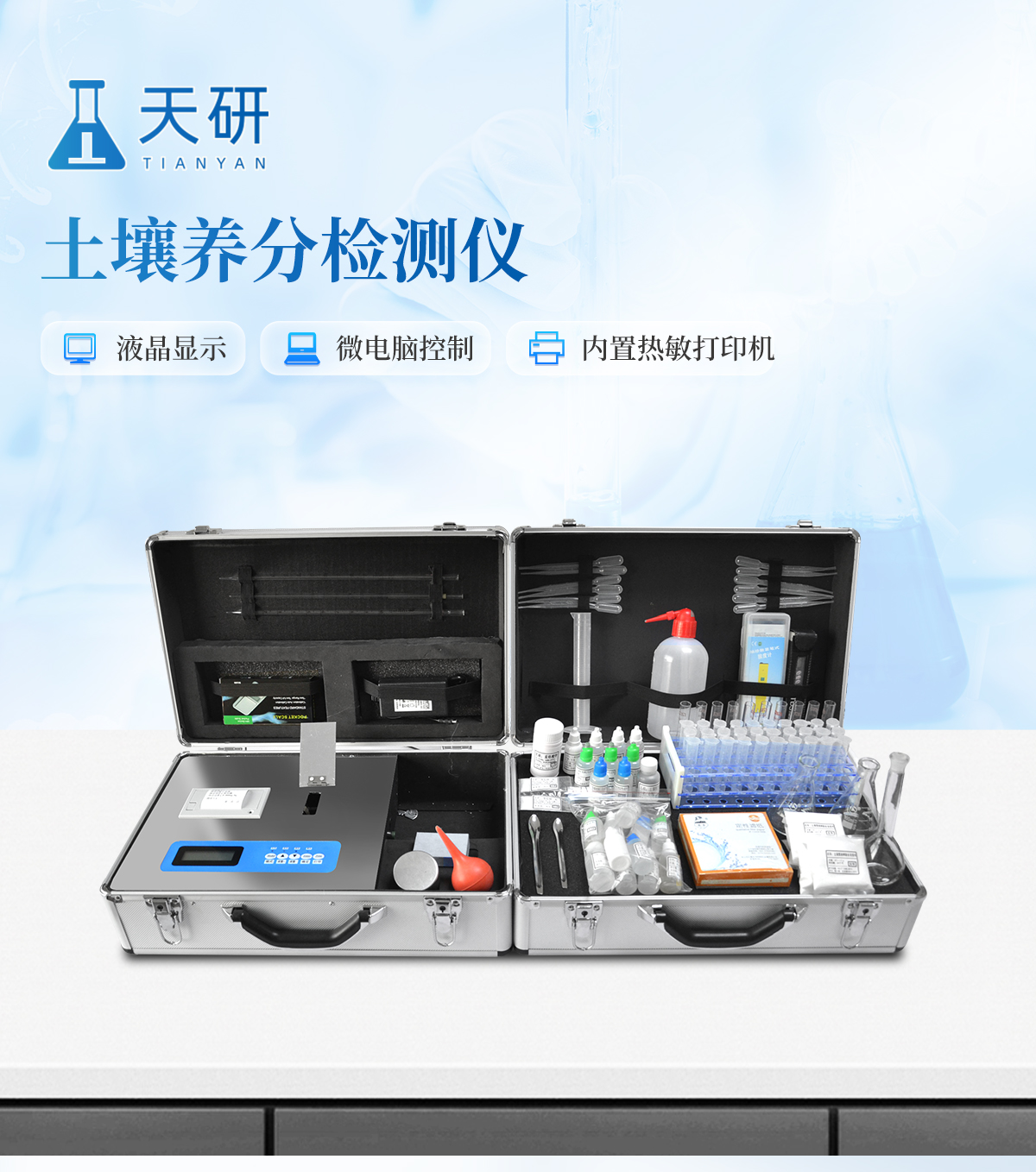 | 復(fù)合肥養(yǎng)分含量檢測(cè)儀功能全:測(cè)試項(xiàng)目國(guó)內(nèi)外*全(各類藥劑均可選購)。 | 配套齊全:該儀器集藥、器、儀為一體,攜帶方便,相當(dāng)于一個(gè)小型實(shí)驗(yàn)室。適于農(nóng)業(yè)服務(wù)部門或農(nóng)資經(jīng)銷商、肥料廠商測(cè)土施肥和鑒別肥料真假。 | 操作簡(jiǎn)便、速度快捷,成品藥劑開瓶即用,無須配置。 |