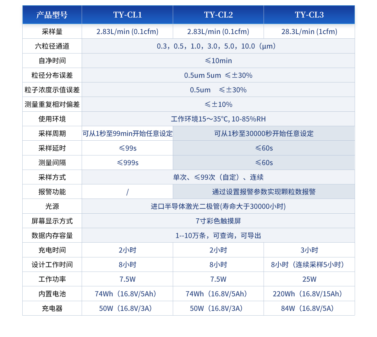 | 采樣量:2.83L/min (0.1cfm) | 六粒徑通道:0.3,0.5,1.0,3.0,5.0,10.0(μm) | 自凈時間:≤10min | 粒徑分布誤差:0.5um 5um ≤±30% | 粒子濃度示值誤差:0.5um ≤±30% | 測量重復相對偏差:≤±10% | 使用環(huán)境:工作環(huán)境15~35℃, 10-85%RH | 采樣周期:可從1秒至30000秒開始任意設定 | 采樣延時:≤60s | 測量間隔:≤60s | 采樣方式:單次、≤99次(自定)、連續(xù) | 報警功能:通過設置報警參數(shù)實現(xiàn)顆粒數(shù)報警 | 光源:進口半導體激光二極管(壽命大于30000小時) | 屏幕顯示方式:7寸彩色觸摸屏 | 數(shù)據(jù)內(nèi)存容量:1--10萬條,可查詢,可導出。 | 充電時間:3小時 | 設計工作時間:8小時 | 工作功率:25W | 內(nèi)置電池:220Wh(16.8V/15Ah) | 充電器:84W(16.8V/5A) |