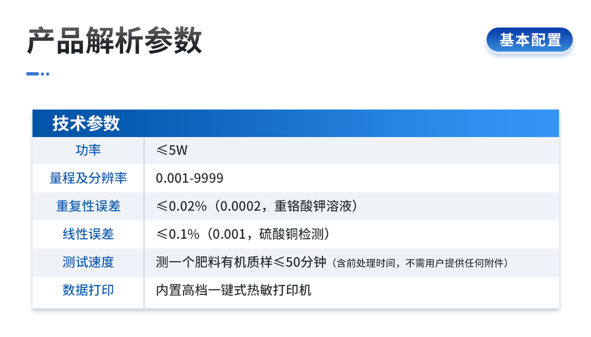 | 可檢測化肥、有機肥(含葉面肥、水溶肥、噴施肥等)、植株中的有機質(zhì)、腐殖酸等。 | 安卓智能操作系統(tǒng),采用更加**和人性化操作,儀器標(biāo)配wifi聯(lián)網(wǎng)上傳、4G聯(lián)網(wǎng)傳輸、GPRS無線遠傳,快速上傳數(shù)據(jù)。 | 采用精密旋轉(zhuǎn)比色池設(shè)計,光源一致性更加**保證檢測精度。一次性可快速檢測12個樣品,極大提升檢測效率,降低檢測成本。 | 儀器配有數(shù)據(jù)接收平臺,無需數(shù)據(jù)線,數(shù)據(jù)可直接局域網(wǎng)和互聯(lián)網(wǎng)無線上傳,方便進行數(shù)據(jù)管理和數(shù)據(jù)長期分析。 | 儀器內(nèi)置新一代高速熱敏打印機,檢測完成可自動打印檢測報告和二維碼。 | 高靈敏7寸電容觸摸屏,高清晰高交互顯示,大程度降低傳統(tǒng)儀器的繁瑣操作和失誤。 | 每個通道均配置四波長冷光源,所有光源實現(xiàn)恒流穩(wěn)壓,保證波長穩(wěn)定。 硅半導(dǎo)體作為信號接收系統(tǒng),壽命長達10萬小時級別。重現(xiàn)性好,準(zhǔn)確度高。 |