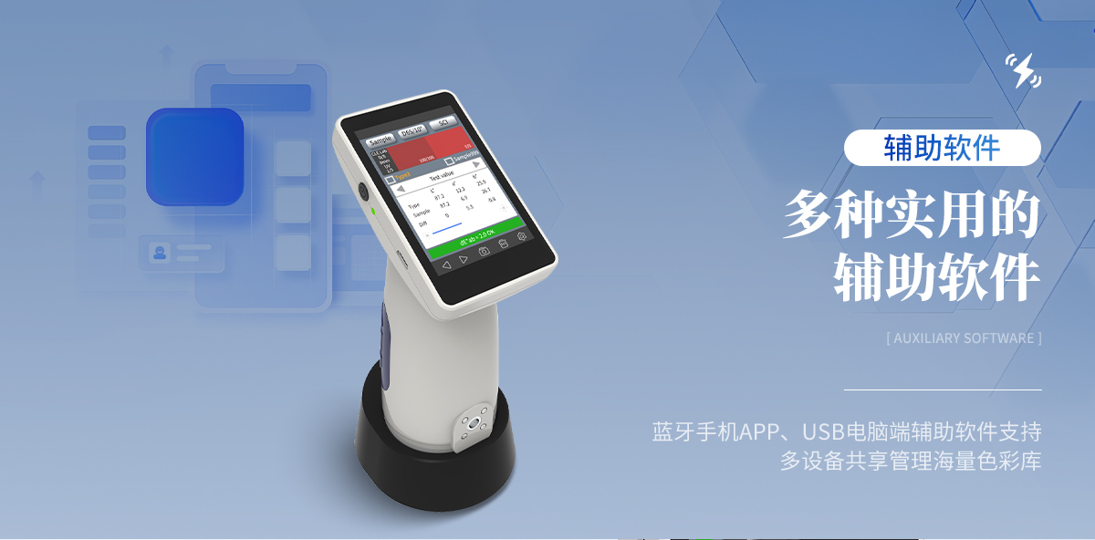 | 1. 機身設計小巧輕便,方便隨身攜帶。 | 2.測量穩(wěn)定數(shù)據(jù)準確:臺間差ΔE*ab<0.4,保證多臺設備測量結(jié)果的準確、一致、穩(wěn)定。 | 3. 開機自動校準:自帶開機自動校準功能,使用方便,校準便捷,客戶無需為校準大費周章。 | 4. 支持多種測量模型:多至34種顏色空間、11種色差公式、26種測量光源,總能適合您的需求。 | 5. 配備多功能底座,可實現(xiàn)給儀器邊充電邊自動校準的功能,二合一兩不誤。 | 6. 多種實用的輔助軟件:藍牙手機APP、USB電腦端輔助軟件支持,多設備共享管理海量色彩庫。 | 7. 一鍵生成并分享測量報告,品質(zhì)管控好幫手。 | 8. 強勁的鋰電池供電,為您的顏色品質(zhì)管控保駕續(xù)航。 |