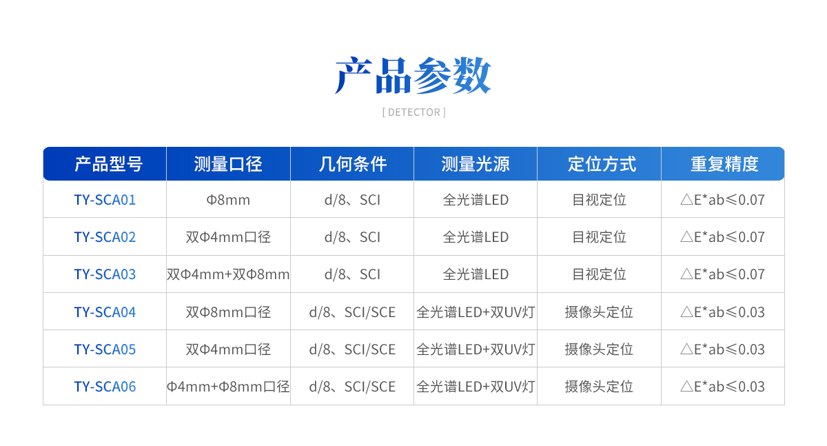 | 型號:TY-SCA01 測量口徑:Φ8mm 幾何條件:d/8、SCI 測量光源:全光譜LED 定位方式:目視定位 重復精度:△E*ab≤0.07 顏色空間:CIE-Lab、CIE-LCh、Luv、Hunter-Lab、XYZ、Yxy、sRGB、DIN LAB99、CMYK (A/T/E/M/I) 實地密度、Munsell、反射率(明視覺)、黑度、YI黃度、同色異譜(跳燈)、遮蓋力、著色力/力度/染料強度、色牢度、Taube白度、Berger白度、Tappi白度、Cros白度、Stephansen白度、甘茨白度(Ganz)、Hunter白度、白度(ASTM)、白度(CIE)、AATCC白度、R457/ISO2470白度、GB/T17644白度 色差公式:ΔE*ab、ΔE*ch、ΔE*uv、ΔE*HunterLab、ΔE*CMC(l:c)、ΔE*94、ΔE*00、ΔE*sRGB、ΔE*BFD、ΔE*FCMII、ΔE*DIN99 標準光源:A、C、D50、D55、D65、D75、F1、F2、F3、F4、F5、F6、F7、F8、F9、F10、F11、F12、CWF、U30、U35、DLF、NBF、TL83、TL84 觀察者:10°(CIE1964)/2°(CIE1931) 波長間隔:10nm 波長范圍:400nm-700nm 校準:自動 是否過計量:過計量 顯示精度:0.01 測量速度:1.0s 操作方式:電容觸屏 屏幕:3.5寸全彩液晶屏 底座:磁吸底座,自動吸附能更好嵌合主機和固定塊 電池容量:充滿電連續(xù)測量10000次 接口:Type C / 藍牙 語言:簡體中文、繁體中文、English APP平臺:Android/IOS/Windows 存儲:機身存儲標樣90條,試樣9000條,另支持App海量存儲 體積:184x93x62mm (不含底座) 重量:320g (不含底座) 物品清單:儀器機身、校準底座、 TYPE C數(shù)據(jù)線、充電器、說明書、保修卡、測量口徑2個(雙8mm口徑版) |