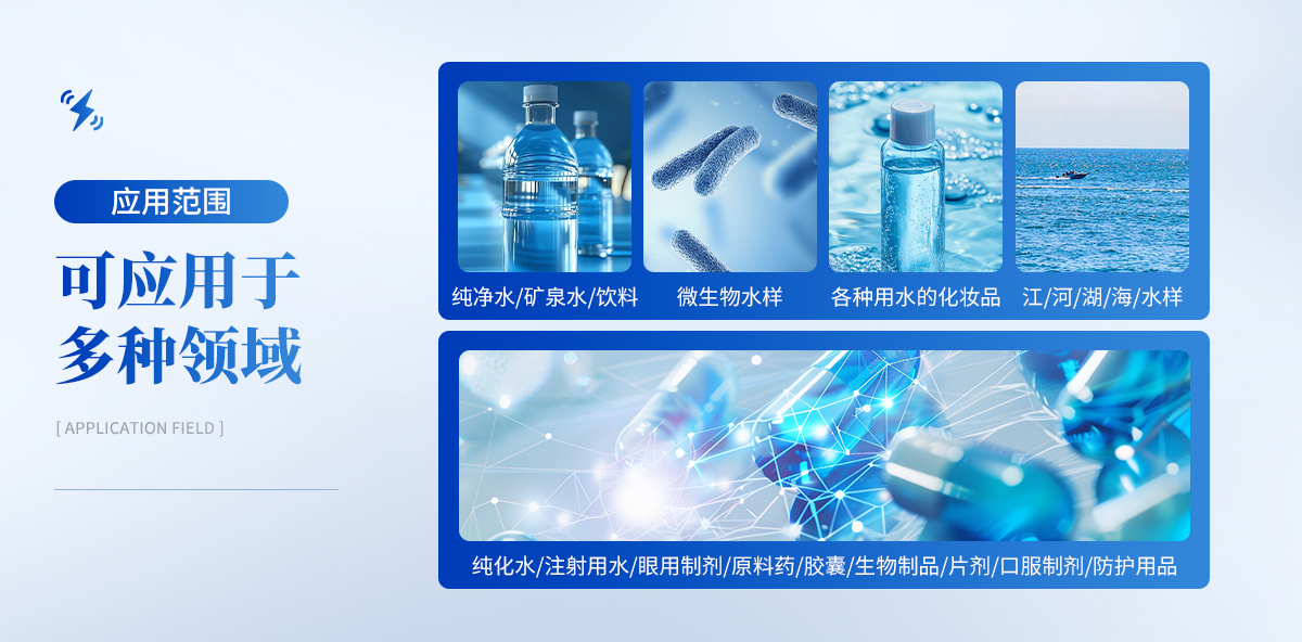 | 1.制藥醫(yī)療:純化水、注射用水、眼用制劑、原料藥、膠囊、生物制品、片劑、口服制劑,防護(hù)用品。 | 2.食品:純凈水、礦泉水、飲料。 | 3.化工:各種需測試微生物水樣。 | 4.化妝品:各種用水及產(chǎn)品。 | 5.控疾:江、河、湖、海、水樣。 |