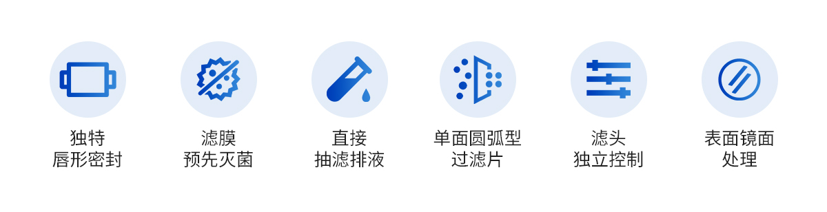 | 1.過濾杯采用獨特的唇形密封設(shè)計,不使用夾鉗和 O 型圈,確保無泄 漏操作和均勻的微生物回收率 2.濾膜預(yù)先滅菌,即拆即用,可將主要污染物源降到**,提高檢測可靠性 3..直接抽濾排液,抽濾瓶,安裝使用方便 4.**真空泵,效率更高 5.小巧的機身,減少對操作臺面積的占用 6.防水開關(guān) 簡潔方便 7.六聯(lián)過濾頭設(shè)計,可同時抽濾,提高工作效率,每個濾頭也可獨立控制,方便操作人員靈活使用 8.過濾頭可快速拆裝,能單獨濕熱滅菌 9.過濾頭可以火焰快速滅菌,方便連續(xù)實驗操作 10.采用單面圓弧型過濾片,方便更換 11.儀器表面經(jīng)鏡面處理,便于清潔和消毒 12.濾杯采用可重復(fù)使用材料設(shè)計,經(jīng)久耐用,節(jié)省成本,操作方便 |