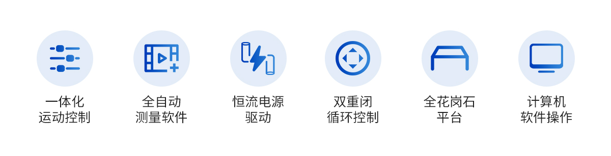 | 儀器基座 | CCD | 鏡頭 | 光柵尺 | 導(dǎo)軌 | 傳動(dòng) | 電機(jī) | 運(yùn)動(dòng)控制 | 程控光源 | 操縱桿 | 全自動(dòng)測(cè)量軟件 | 加密狗 | 光學(xué)校正片 | 電壓 | 計(jì)算機(jī) |