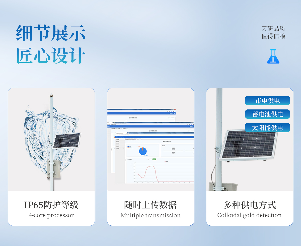 | 監(jiān)測系統(tǒng)平臺,界面地圖可定位設備位置,可直觀的查看和查詢設備*新數(shù)據(jù)、歷史數(shù)據(jù)、單位、預警上限、預警下限、狀態(tài)等多項內容,并且能夠對上限、下限參數(shù)進行設置,以及查看報警記錄等。能夠快速將選定的數(shù)據(jù)列表以EXCLE表格文件的形式導出。平臺可以同時綁定多個監(jiān)測站設備。 | 土壤墑情速測儀采用分層設點的觀測結構,地面配置一個溫度觀測點,地下土壤每隔10cm配置一個土壤溫濕測點,觀測相對應范圍內的土壤溫濕度。 |