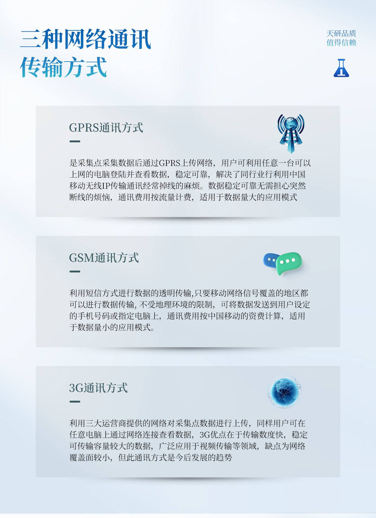 | 預先埋入一根塑料管,將主傳感器安置于管內,能夠從預留管中輕松地取出、更換主傳感器,維修方便,循環(huán)使用率高。 | 可在塑料管中上下移動,實現(xiàn)對各個土層土壤水分含量的動態(tài)觀測。 | 發(fā)射近1G赫茲的高頻探測波,可以穿透塑料管,有效感知土壤環(huán)境。 | 不會受土壤中鹽離子的影響,化肥、農藥、灌溉等農業(yè)活動不會影響測量結果,數(shù)據(jù)精準。 | 傳感器的電極沒有直接與土壤接觸,避免電力對土壤及土壤中的植物的干擾。 | 可以靈活定制不同土層深度間隔的監(jiān)測儀,滿足不同用戶的實際需求 |