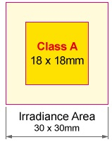 ![]() | 均勻性 在350-1800nm的范圍內(nèi),1太陽的計算值大約是94.4 mw/cm。 工作距離:大約220毫米可以通過光強(qiáng)度控制來調(diào)節(jié)由燈壽命引起的光強(qiáng)度下降。超過A類區(qū)域的大小是參考值。請注意,燈的輸出因制造批次而異。它需要分別檢查光強(qiáng)度。 |