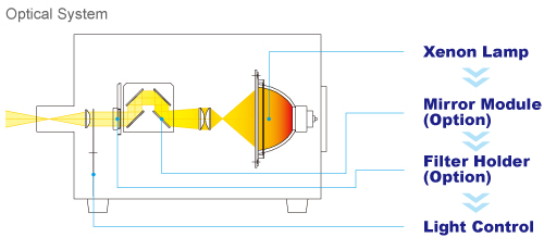 LAX-C100是標準100 W的氙光源。其**的鏡面模塊屏蔽了熱量和雜散光,得到理想的波長范圍。LAX-C100也可以通過通光帶濾光器形成單色光。