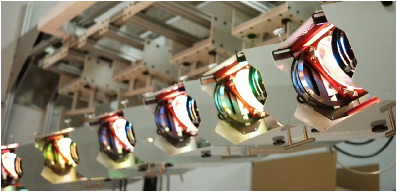 我們使用了8個2kW的QTH燈提供了1.5 x 1.5m2的輻照面積。輻照強(qiáng)度從1個太陽到0.1個太陽可調(diào)。客戶要求將光譜限制在紅外波長范圍內(nèi)。